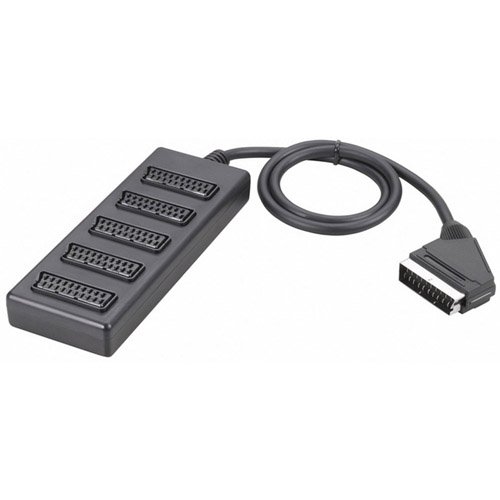 Thomson Boîtier peritel 1 m / 5 f?- 1 entrée Péritel mâle -> 5 sorties Péritel femelle ,- 21 broches parallèles connectées ,- Compatible RVB et S-Vidéo ,- Couleur : noir , ,Données techniques: ,- Entrées: Péritel femelles ,- Nombre d'entrées: 1 ,- Nombre de sorties: 5 ,- Sorties: Périte