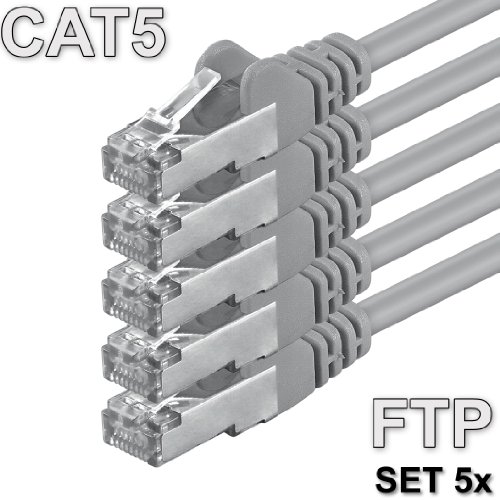 1aTTack - Câble réseau ethernet RJ45 CAT5 Lan - Set - UTP - (5 pièces) - 10m - gris